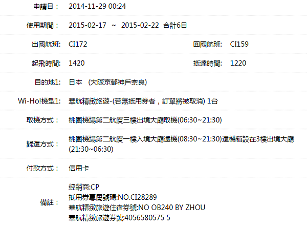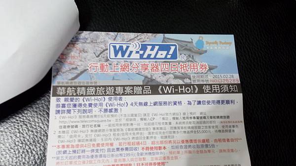 我11月在旅展參加了華航精緻旅遊得到的Wi-Ho行動上網分享器四日抵用券。