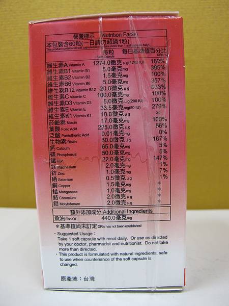 完整維生素及礦物質,有增加女性缺的鐵跟葉酸,把每個月流失的補回來,讓氣色紅潤。