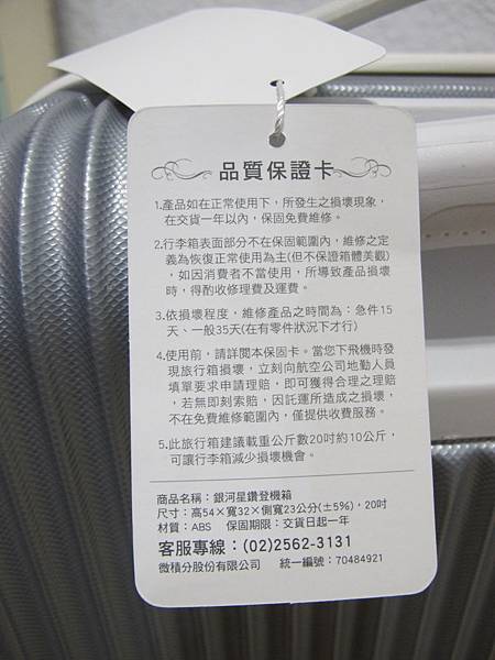 10月7日辦卡,10月14日就叫我去領行李箱,還真是有效率。