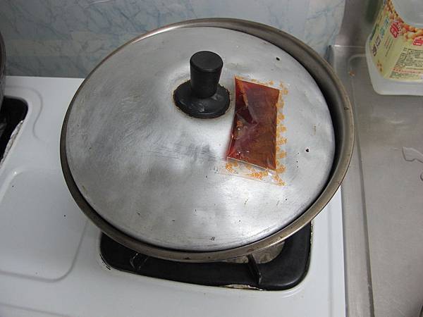 因為醬也被冷凍,所以煮的時候我放在鍋蓋上一起熱