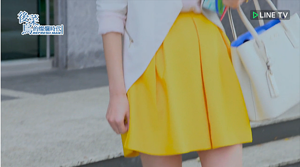 粉色上衣(全扣)+白色西裝外套+鵝黃色裙子