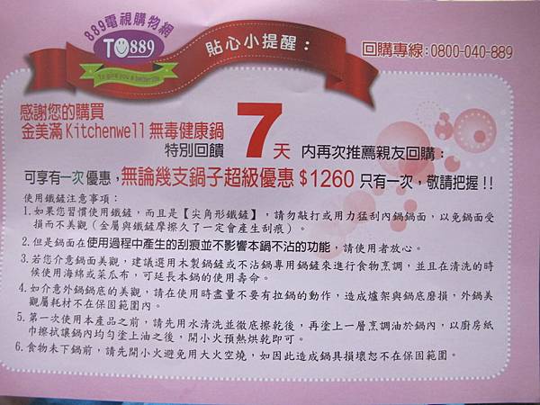 金美滿 KITCHENWELL 不沾無毒健康鍋的廣告,決定買一把看看。