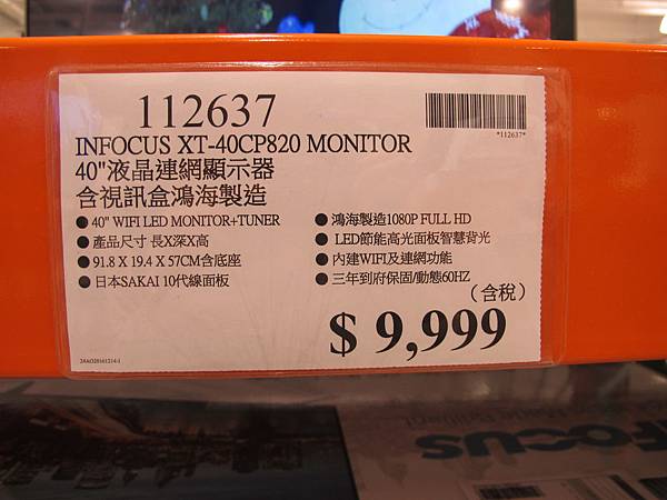 去COSTCO扛了一台電視回家,40吋,特價NT$9,999