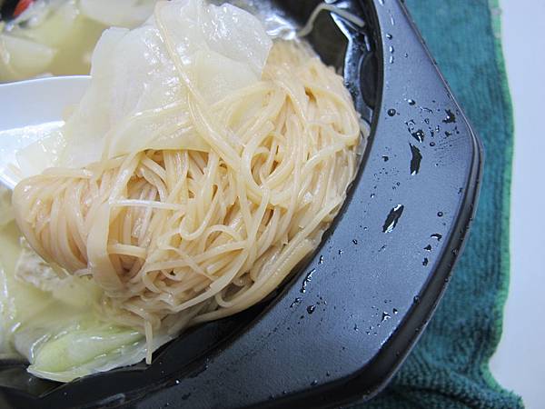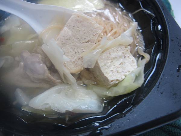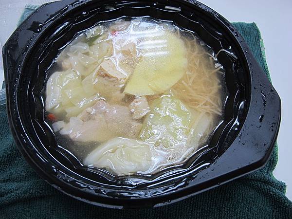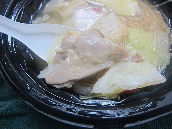 有高麗菜,蛋餃,凍豆腐,麵線,跟花雕雞