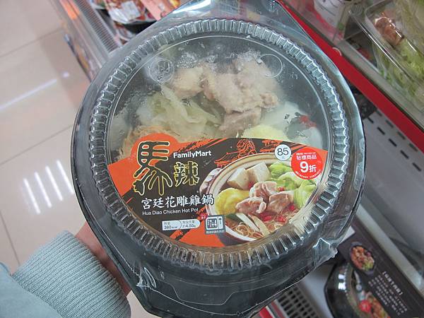 今天中午去全家覓食,發現宮廷花雕雞鍋,NT$ 85 還可打9折