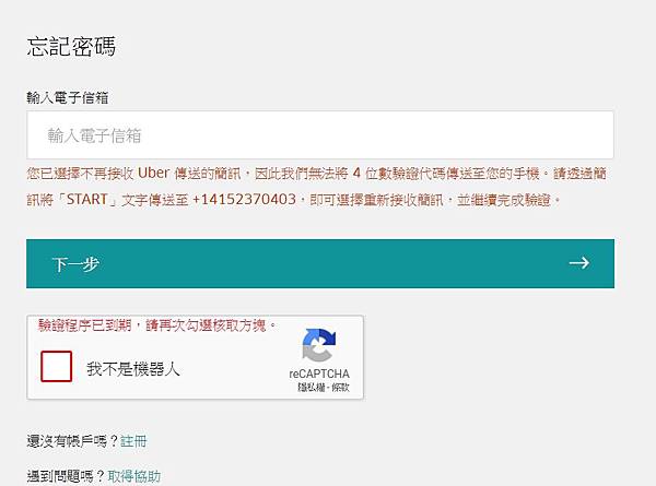 您已選擇不再接收 Uber 傳送的簡訊,因此我們無法將 4 位數驗證代碼傳送至您的手機。