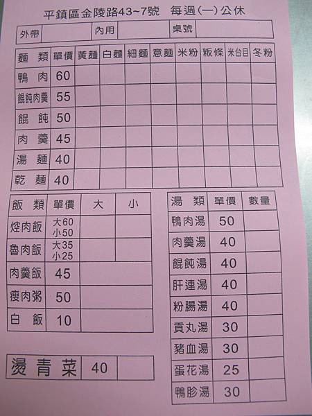 價目表~份量大又平價喔