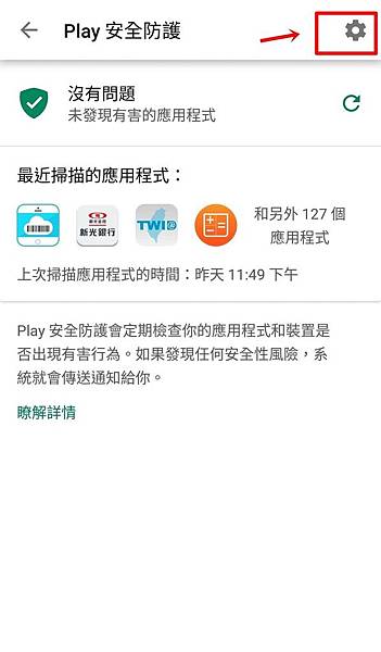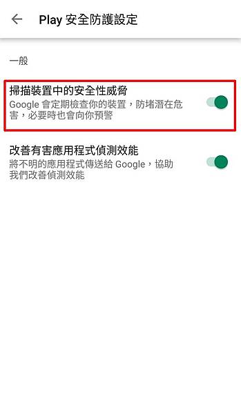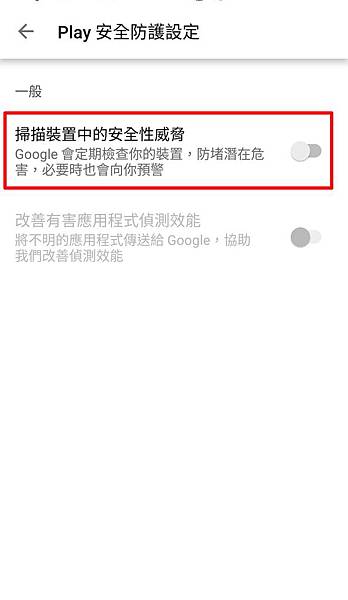9. 關閉「掃描裝置中的安全性威脅」出現灰色代表關閉