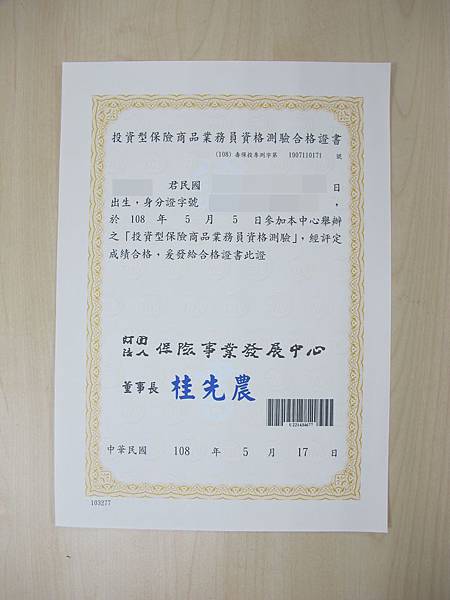 通過 投資型保險商品 業務員資格測驗