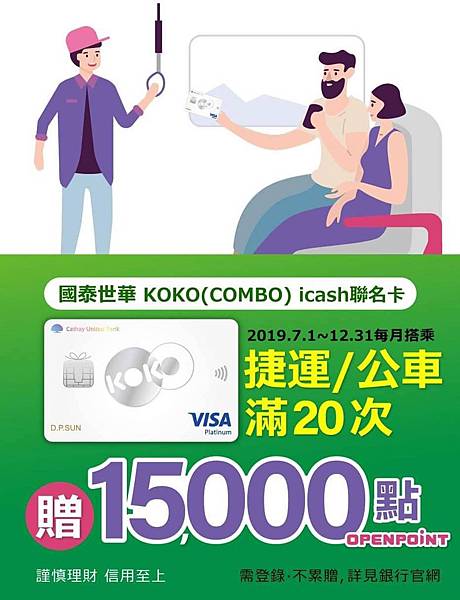 國泰KOKO (COMBO) icash聯名卡 搭捷運公車20次回饋15000點