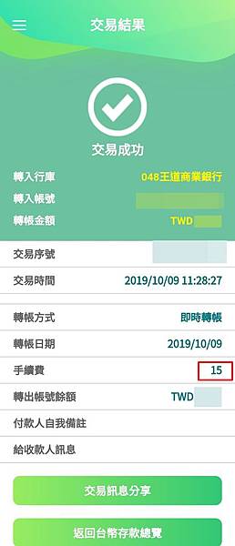 比較不方便的是會先收15元轉帳費,下個月會退還