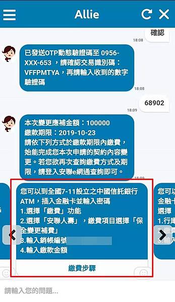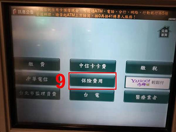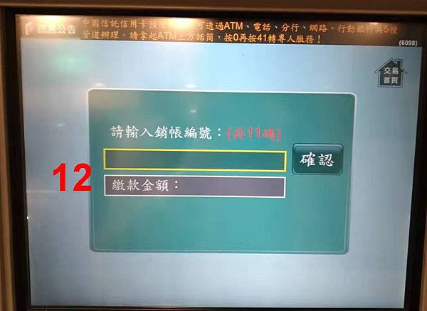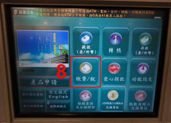 去中國信託ATM→【繳費】