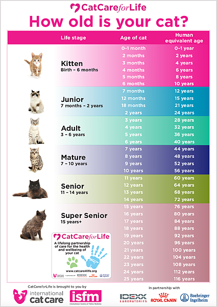 Cr: https://icatcare.org/advice/how-to-tell-your-cats-age-in-human-years/
