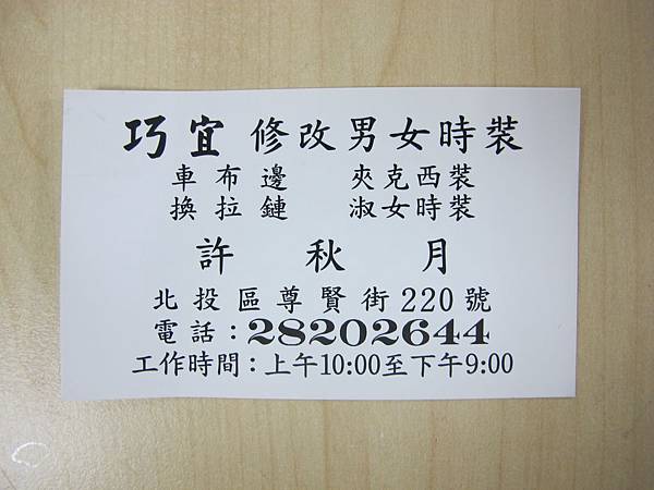 『北投』巧宜 修改衣服 換拉鍊