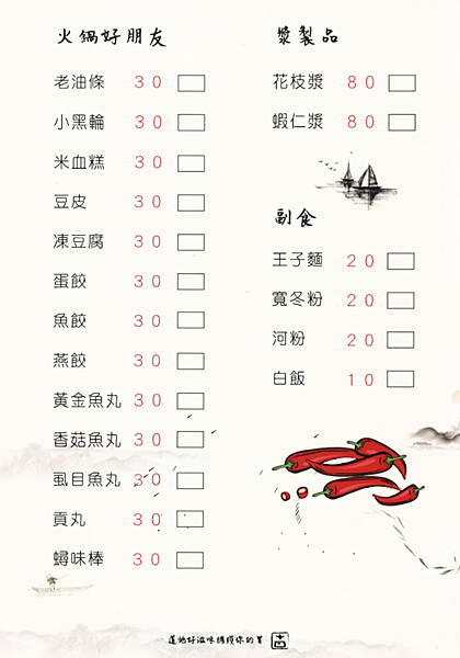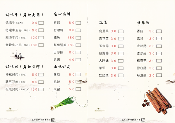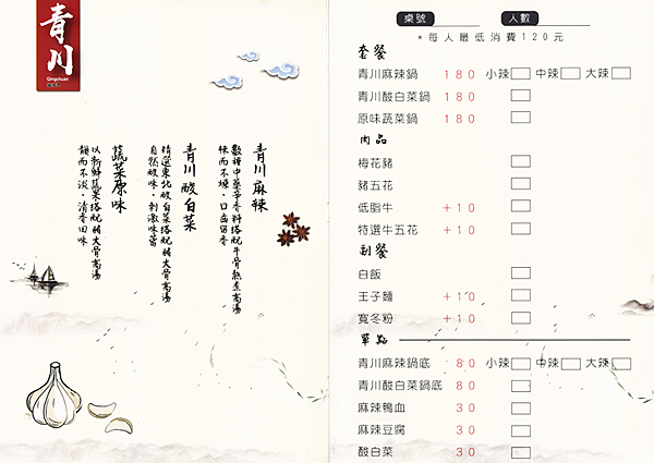 菜單滿簡單,這裡只要選湯底,肉品跟副餐就好