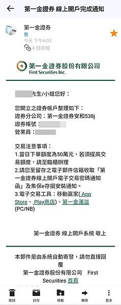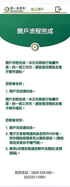 2月7日 開戶完成通知我的營業員跟帳號