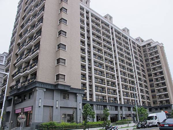 一整個很有工業風的社區,對面是安養中心,大樓一樓是商店。後來上網查,原來初代建商跑路,後來另一個建商接管。