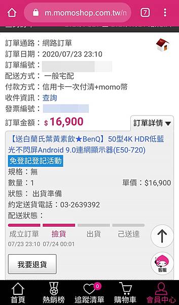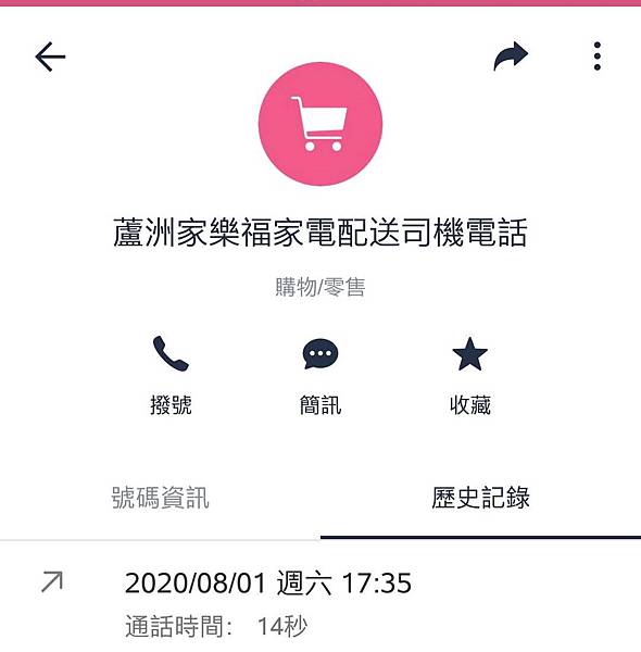 等到受不了,問MOMO客服何時送到。客服給我一組電話,一打出現蘆洲家樂福的電話