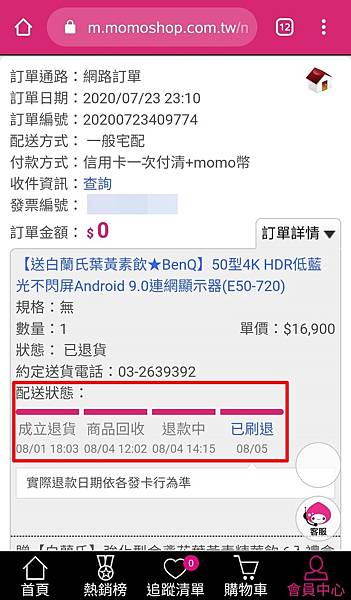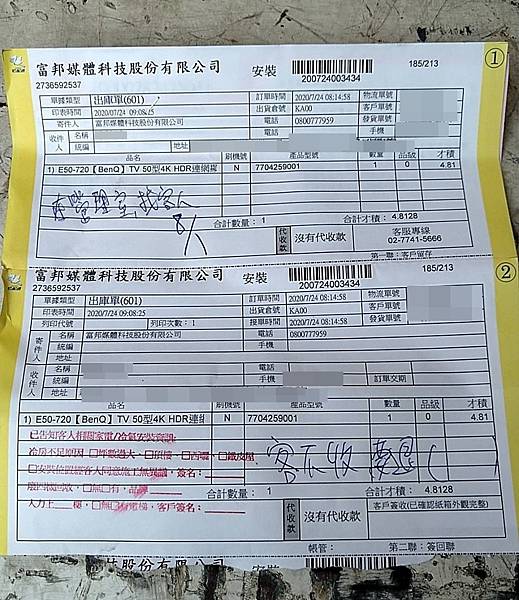 我都有跟物流中心說好了,對方卻沒寫下來,怪誰,我也不想引起爭議,直接退貨。