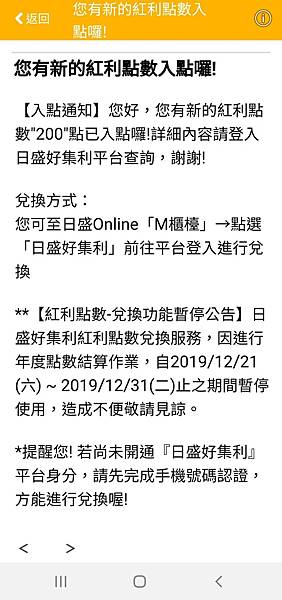 收到簡訊說我有200點點數~