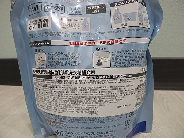 Ariel超濃縮抗菌抗蹣洗衣精補充包1360g