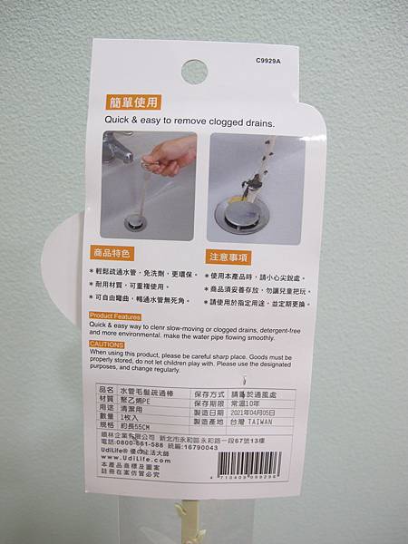 在寶雅看到的水管毛髮疏通棒,感覺很猛,來試試看