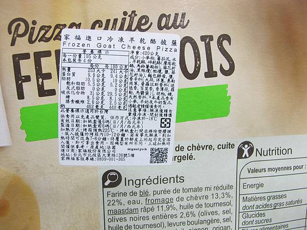 『家樂福』FEU DE BOIS 冷凍乾酪披薩