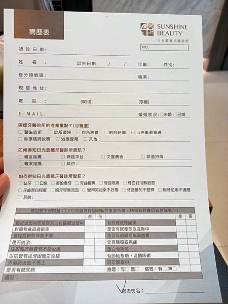 初診表格